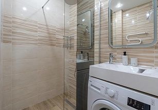 санузлом со всем необходимым для соблюдения личной гигиены и стиральной машинкой;